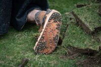 Archaeological evidence of the siege — lead and stone slingshot balls, arrowheads, mass graves — and remains of the camp’s south, west and east gates have been found in previous excavations. The playground is located on the wood-earth wall, and the excavation found well-preserved post holes from the wall. It also uncovered two bread-baking pit ovens and several waste pits. The boot was found in one of the waste pits.