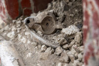 The actual lararium altar mirrors the offerings depicted in the fresco. Archaeologists found the last offering still in the niche when Vesuvius buried the city. An incense burner and lamp bear traces of burning, and behind them were the remains of twigs from aromatic plants and a dried fig. Strips of colored marble and a small relief of a Dionysian figure, likely Silenus, were also found on the altar’s surface. A molded marble base and an iron knife were on the front part of the altar.